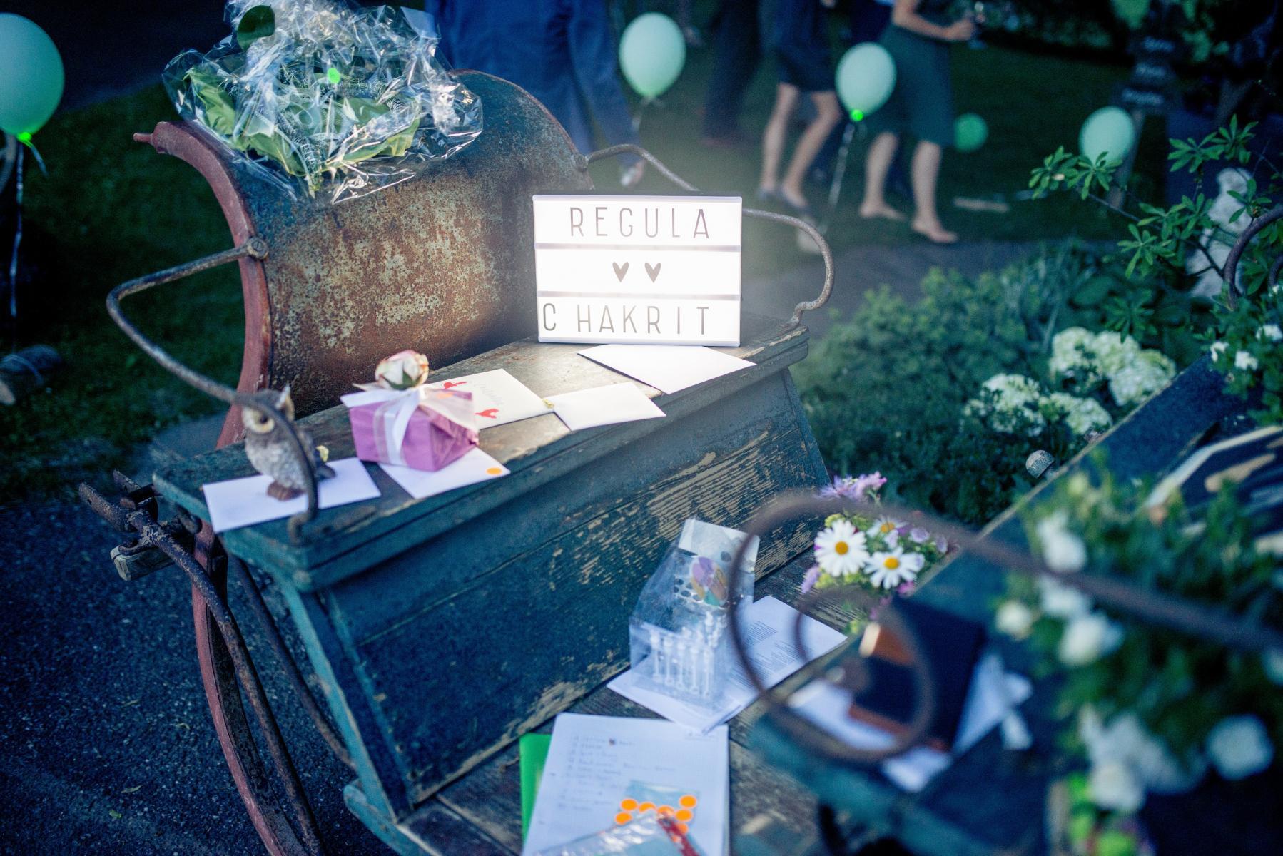 Wir haben versucht von klein bis gross und von langweilig bis weniger etwas zu finden. Ob du lieber eine Überweisung machst, ein Kärtli schreibst oder Mäschali bastelst überlassen wir dir. Bitte stimm dich aber zuerst mit unseren Trauzeugen ab.